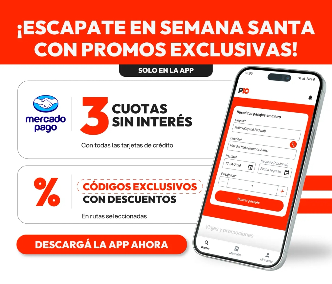 Ya sea para una escapada corta o unas vacaciones Argentina tiene miles de rincones para descubrir en micro, desde grandes ciudades hasta playas y destinos turísticos únicos. Si estás pensando en tu próxima escapada, visitá nuestra sección de destinos destacados y planificá tu viaje con anticipación para aprovechar los distintos rincones del país. Al esté podés encontrar pasajes a Mar del Plata, el balneario más visitado del país, ideal para vacaciones en la costa. Conseguí también pasajes a Córdoba, una ciudad con sierras, historia y cultura. Si preferís recorrer el litoral, podés sacar pasajes a Rosario, con su costanera y propuestas gastronómicas. Para viajes al oeste argentino, tenemos pasajes a Mendoza, famosa por sus bodegas y paisajes cordilleranos. Si querés conocer el sur argentino y sus paisajes patagónicos, también podés sacar pasajes a Calafate, puerta de entrada al imponente glaciar Perito Moreno. Y si te tienta el norte argentino con su cultura andina, paisajes únicos y pueblos históricos, no te pierdas de sacar pasajes a San Salvador de Jujuy, la ciudad ideal para empezar tu recorrido por la Quebrada de Humahuaca y el Cerro Siete Colores.
