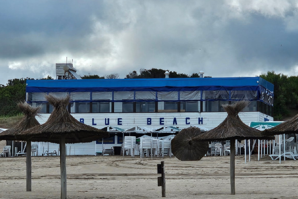 Blue Beach es uno de los paradores más conocidos de Mar Azul. Con su estética descontracturada entre la arena y el bosque, ofrece un ambiente relajado para almorzar, tomar un trago o simplemente descansar en sus camastros.