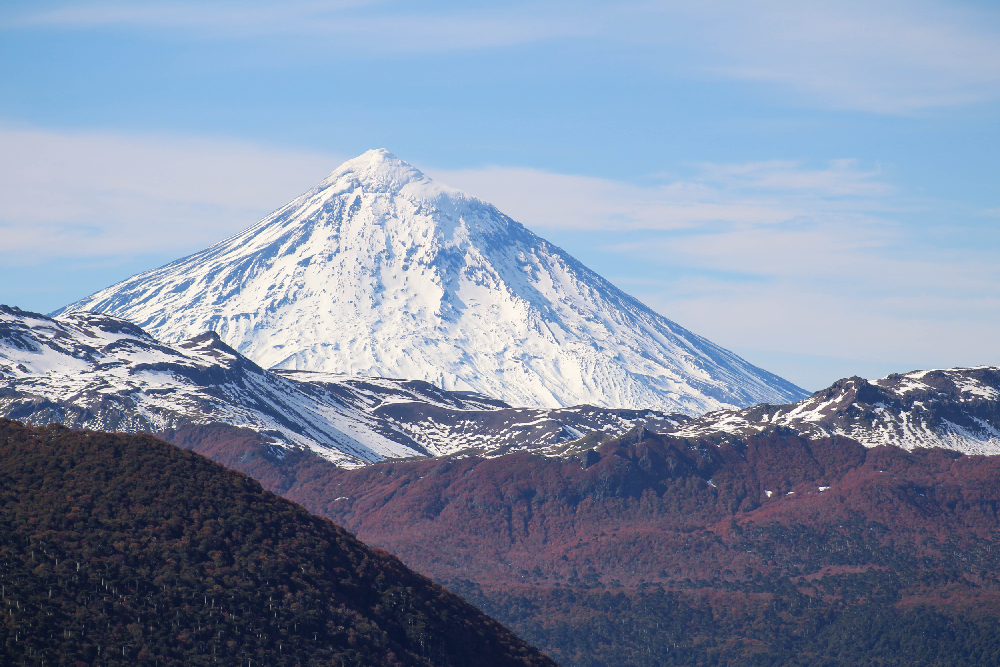 El volcán transmite una sensación de fuerza y equilibrio natural que resume el espíritu patagónico: imponente, silencioso y profundamente conectado con la tierra.